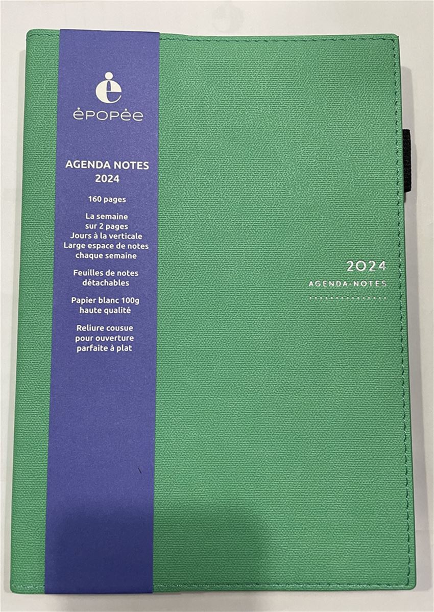 Format A5 14,8 cm x 21 cm 160 pages Couverture souple, amovible et délicatement grainée. Papier intérieur blanc 100g ultra lisse Reliure cousue pour ouverture à plat maximale La semaine sur deux pages, jours à la A5 vert d'eau