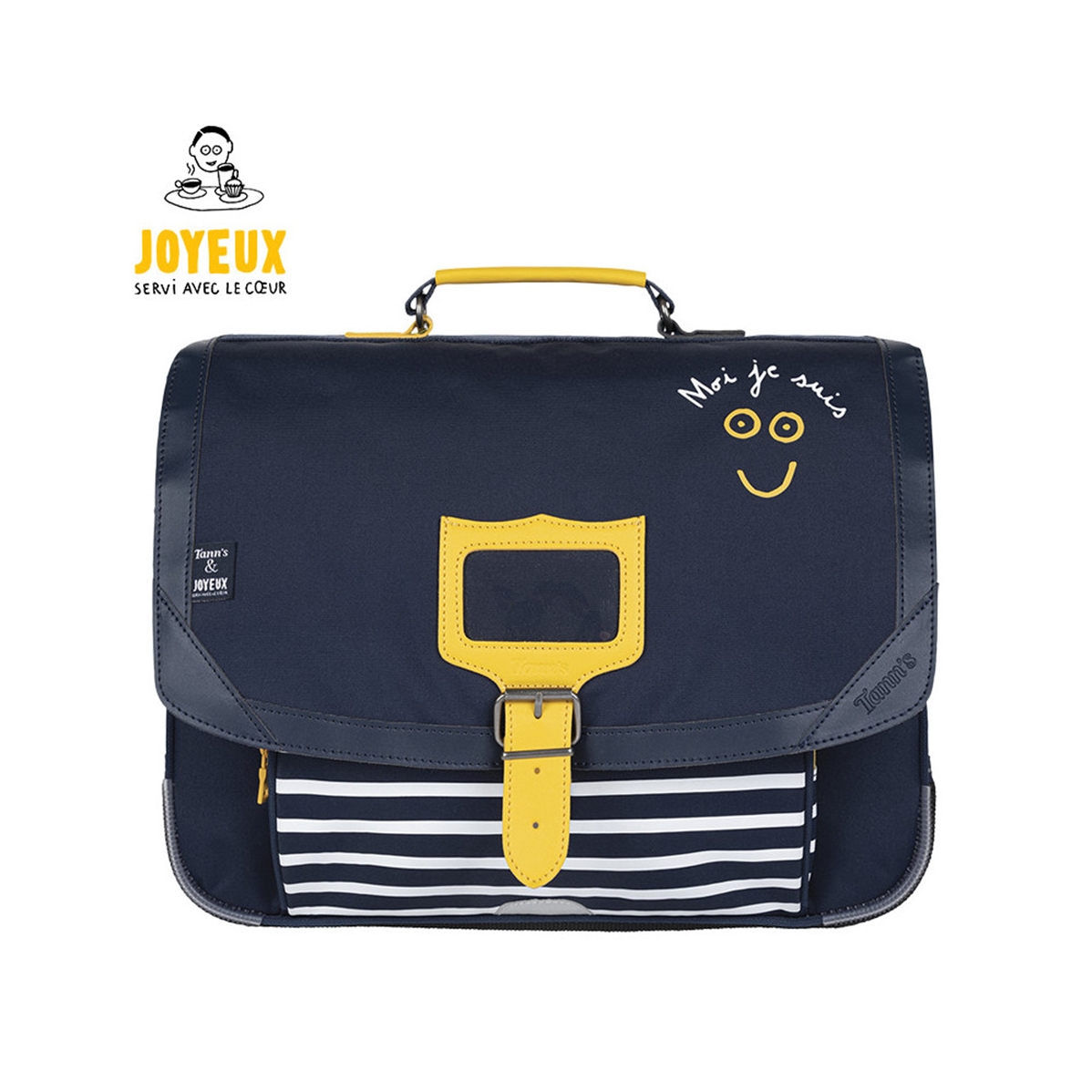 Café Joyeux est une entreprise solidaire d'utilité sociale. Elle emploie des serveurs et cuisiniers souffrant de troubles cognitifs ou de handicaps mentaux. Ce cartable Théo arbore un joli sourire qui ne manquera pas d'illuminer votre journée !